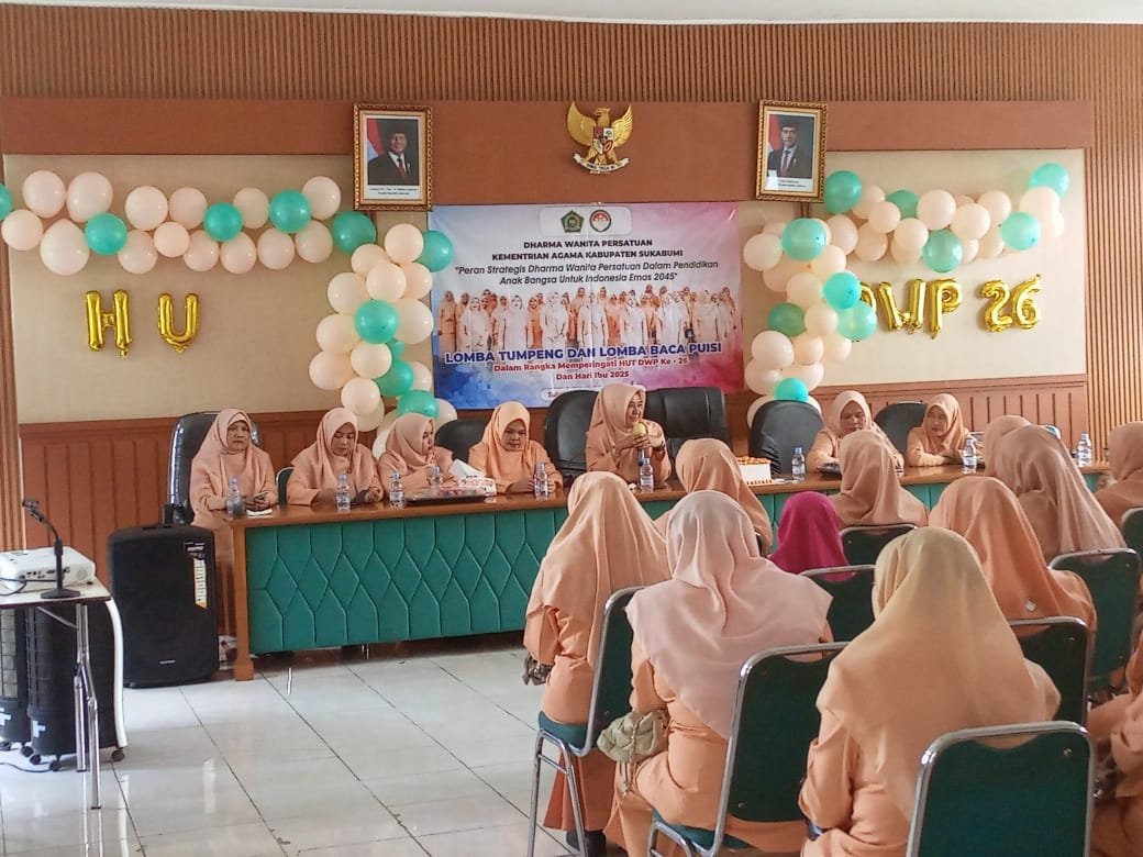 Peringatan Hari Ulang Tahun ke-26 Dharma Wanita Persatuan (DWP) di lingkungan Kementerian Agama Kabupaten Sukabumi berlangsung penuh haru. Pada momen tersebut, salah satu anggota DWP, Ibu Hj. Sinta Abdul Manan, menyampaikan pamitan secara resmi, Senin (09/12/2025).